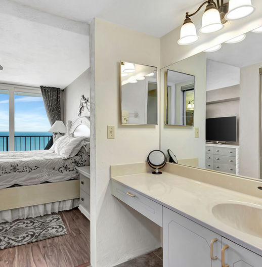 This beautifully appointed 2-bedroom, 2-bath oceanfront condo is decorated in a bright, cheerful coastal style that instantly makes you feel like you’re on vacation every day. Thoughtful upgrades can be found throughout, including tile flooring, custom window treatments, new sliding glass doors, and more.